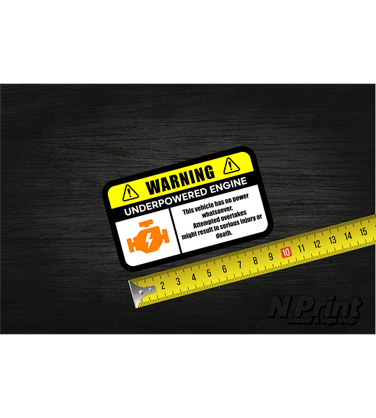 Autocolante underpowerde engine em vinil impresso, com laminação para uma maior durabilidade.